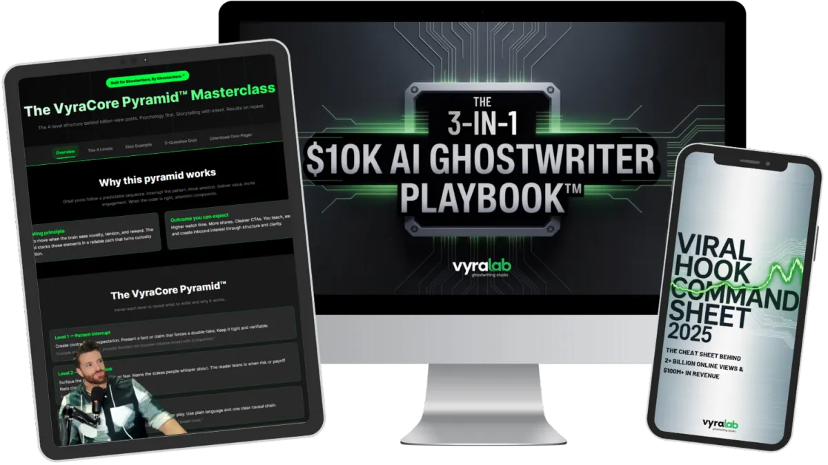 I've also helped top-tier clients earn $100M+ in revenue and built systems that land $3K–$10K ghostwriting clients